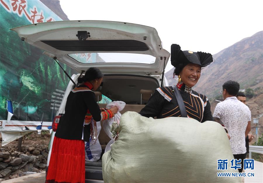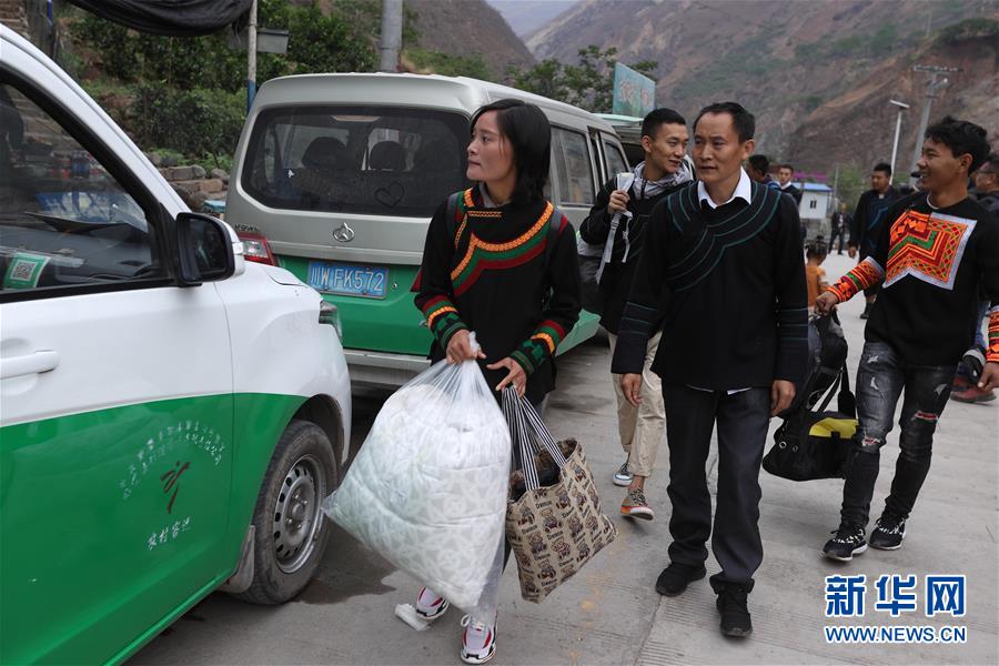 5月12日,四川省昭觉县阿土列尔村第一批26户贫困户陆续下山准备搬新家。新华社记者江宏景摄