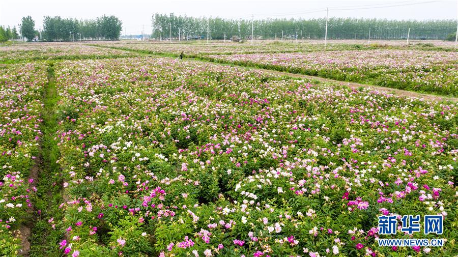 这是5月11日拍摄的金湖县金灿芍药园(无人机照片)。新华社记者李博摄