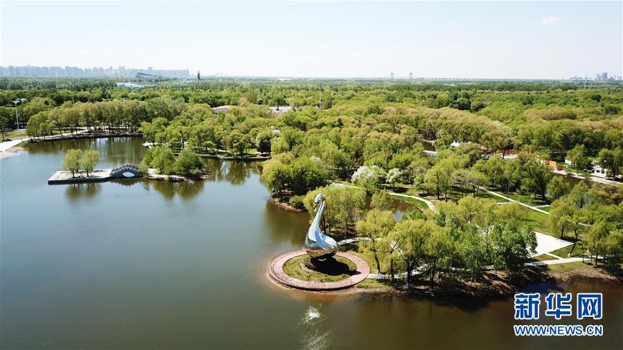 这是5月13日拍摄的太阳岛风景区。时下,位于黑龙江省哈尔滨市的太阳岛国家级风景名胜区草青树绿,绿意盎然。新华社记者王建威摄