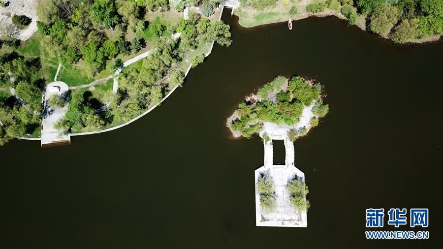 这是5月13日拍摄的太阳岛风景区(无人机照片)。时下,位于黑龙江省哈尔滨市的太阳岛国家级风景名胜区草青树绿,绿意盎然。新华社记者王建威摄