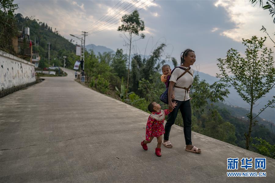 一名妇女领着孩子走在回家的路上(3月26日摄)。新华社记者江文耀摄