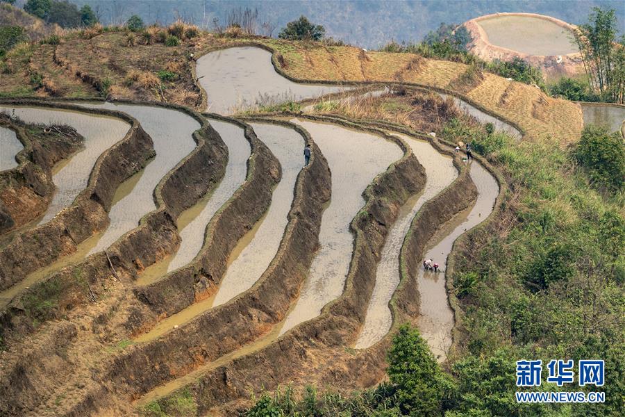 村民在地里插秧(3月26日摄)。新华社记者江文耀摄