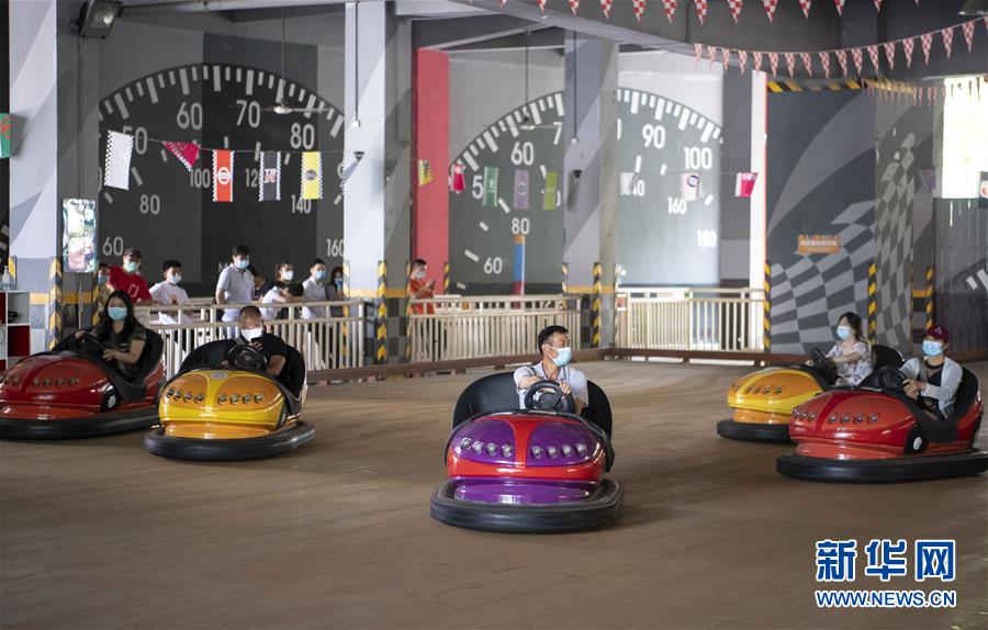 5月19日,游客在武汉欢乐谷内游玩。当日,湖北武汉欢乐谷重新开放。园区执行客流量管控,游客需通过网上预约才能进入,室内场馆暂不开放。新华社记者熊琦摄