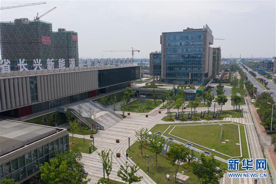5月21日,空中俯瞰新能源小镇“城市客厅”(无人机照片)。新华社记者徐昱摄