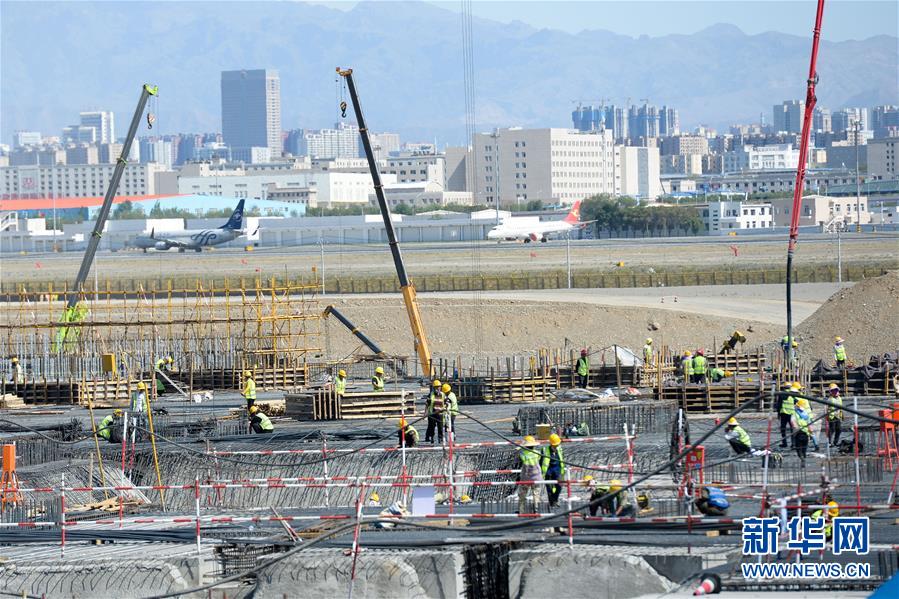 5月23日,工人在乌鲁木齐机场改扩建工程施工现场作业。新华社记者丁磊摄