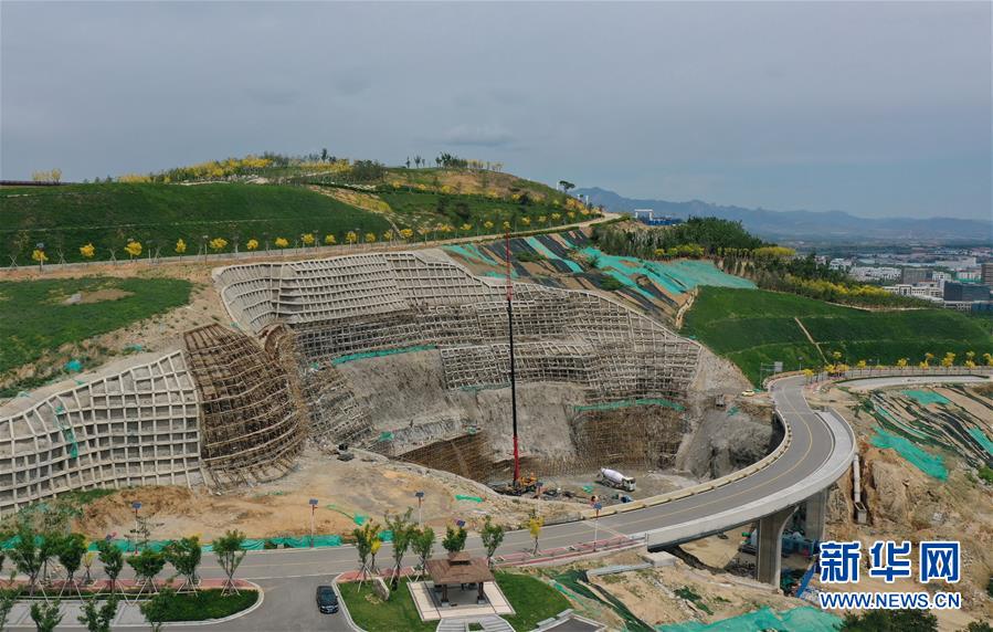 5月25日拍摄的秦皇岛经济技术开发区栖云山生态修复工程工地(无人机照片)。新华社记者杨世尧摄