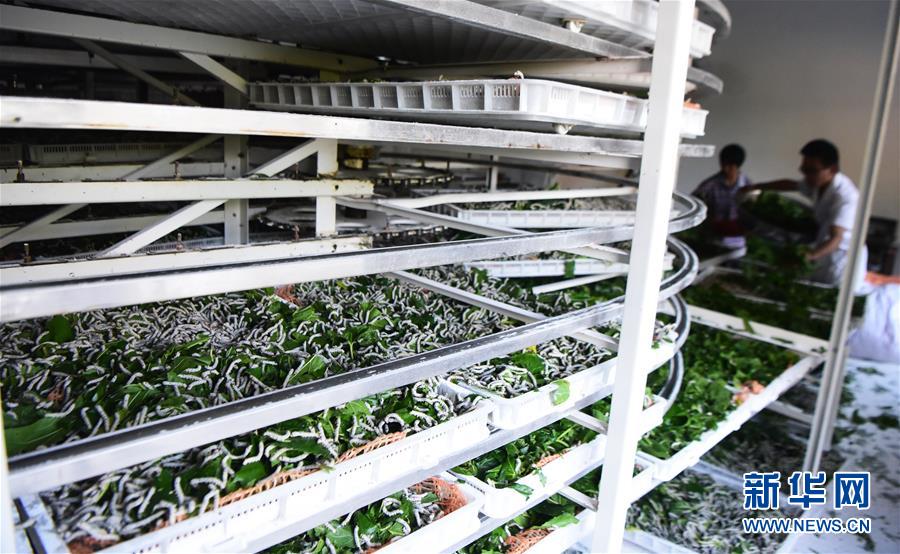 5月29日,奉节县新民镇中岭村蚕桑产业扶贫基地工作人员在智能化小蚕共育室内作业。新华社记者 王全超 摄