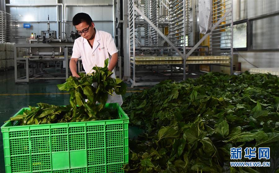 5月29日,奉节县新民镇中岭村蚕桑产业扶贫基地工作人员在智慧蚕房内作业。新华社记者 王全超 摄