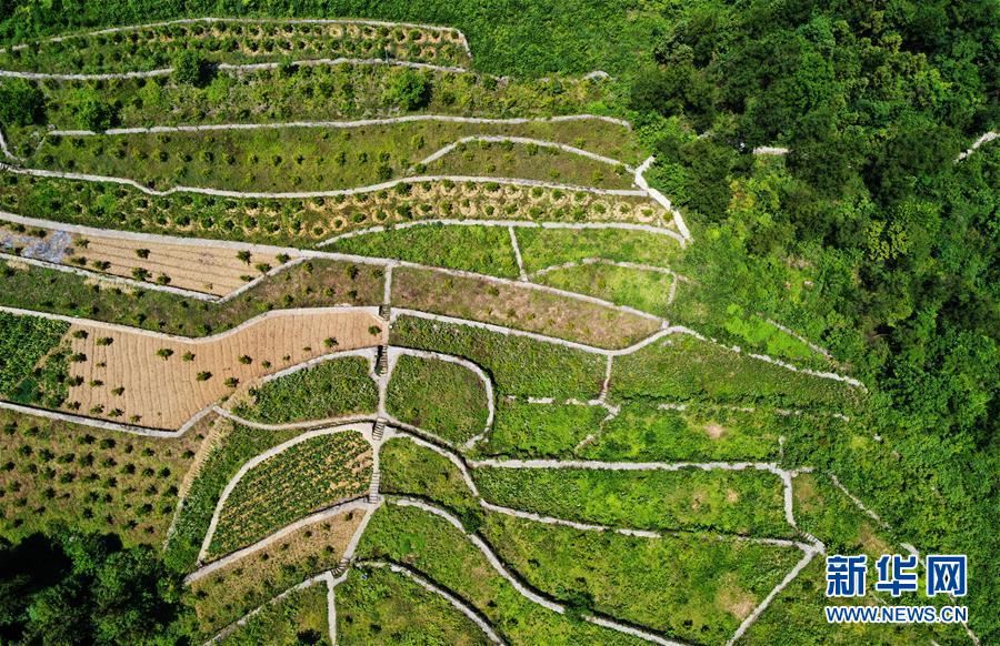 5月30日,游客在大窝社区游玩(无人机照片)。新华社记者王全超摄