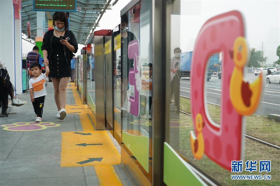 5月31日,乘客在南京市建邺区河西新城有轨电车友谊街站候车。新华社记者季春鹏摄
