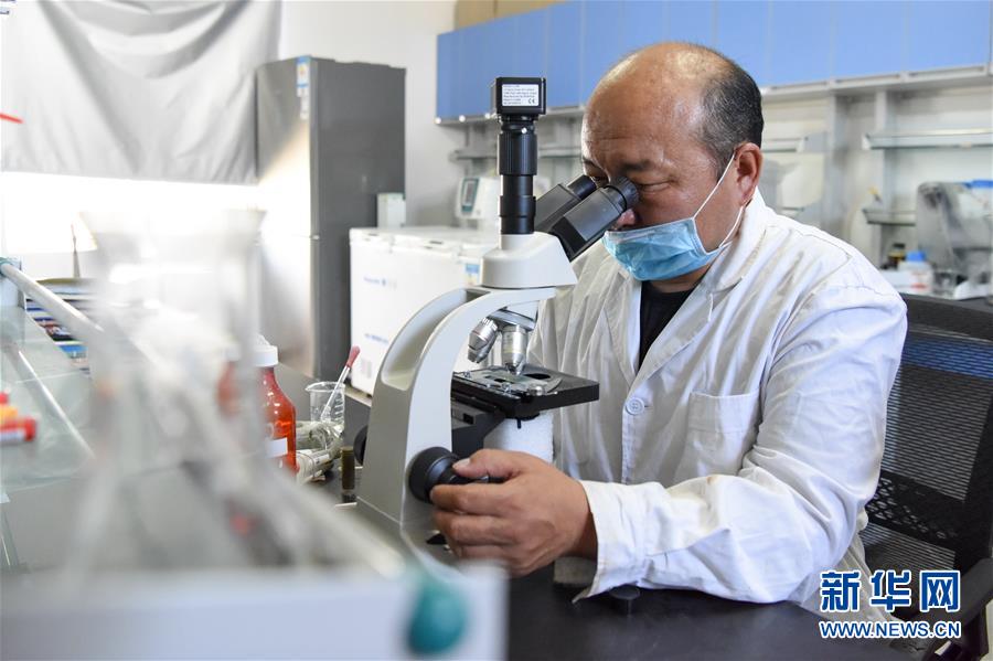 6月2日,在新疆野马繁殖研究中心,工作人员在进行马粪的寄生虫监测。新华社记者丁磊摄。