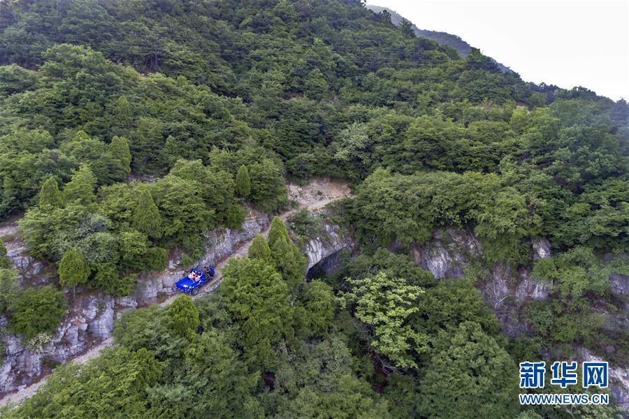 6月2日,秦春兰、秦秋兰和秦兴旺姐弟三人乘坐父亲驾驶的三轮车前往学校(无人机照片)。