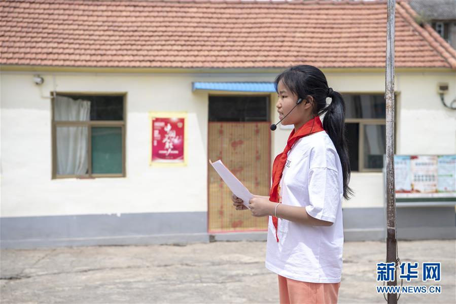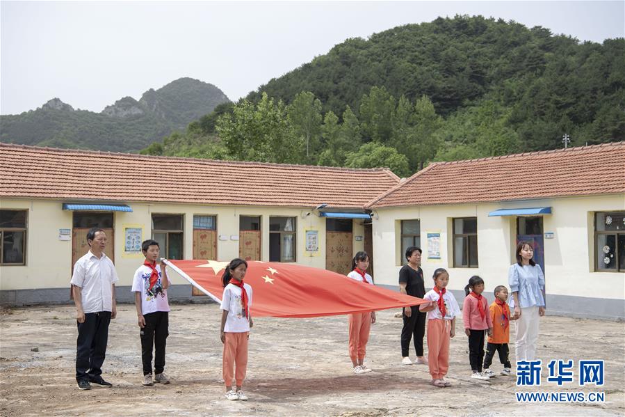 6月2日,开学第一天,马武寨寄宿制小学举行了升旗仪式。新华社记者杨晨光摄。