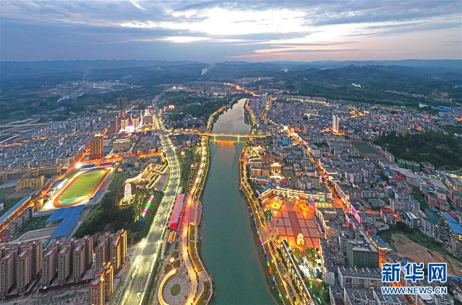 广西环江毛南族自治县县城夜景(5月22日摄,无人机照片)。新华社记者周华摄。
