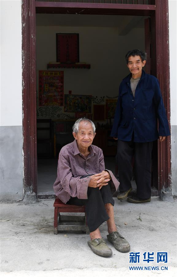 在广西环江毛南族自治县下南乡下塘村上眉屯,谭广田(右)和父亲谭运日在家门口(5月23日摄)。新华社记者陆波岸摄。