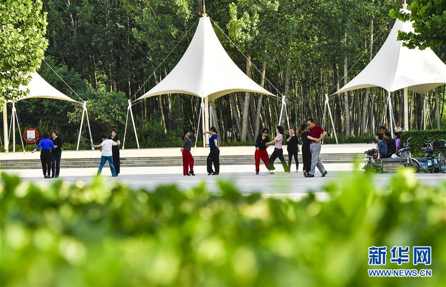 6月5日,市民在文安县森林公园内健身。近年来,河北省文安县将植树造林与城市建设有机融合,探索“政府引导、企业运作、多方共赢”的市场化植树造林新模式,大规模推进国土绿化,打造人与自然和谐共生的优美生态环境,构筑京津雄绿色屏障。截至目前,该县森林覆盖率已经达到33%,城区绿地面积达到36.48%。新华社记者李晓果摄。