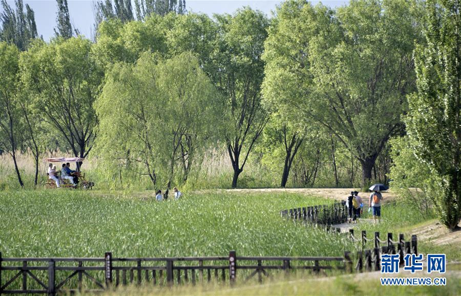 6月7日,市民在位于北京市延庆区的野鸭湖国家湿地公园游玩。随着北京消费季的启动,不少市民利用周末时间来到北京远郊的风景区游玩,参加当地举办的各类消费季和休闲旅游活动。新华社记者李欣摄