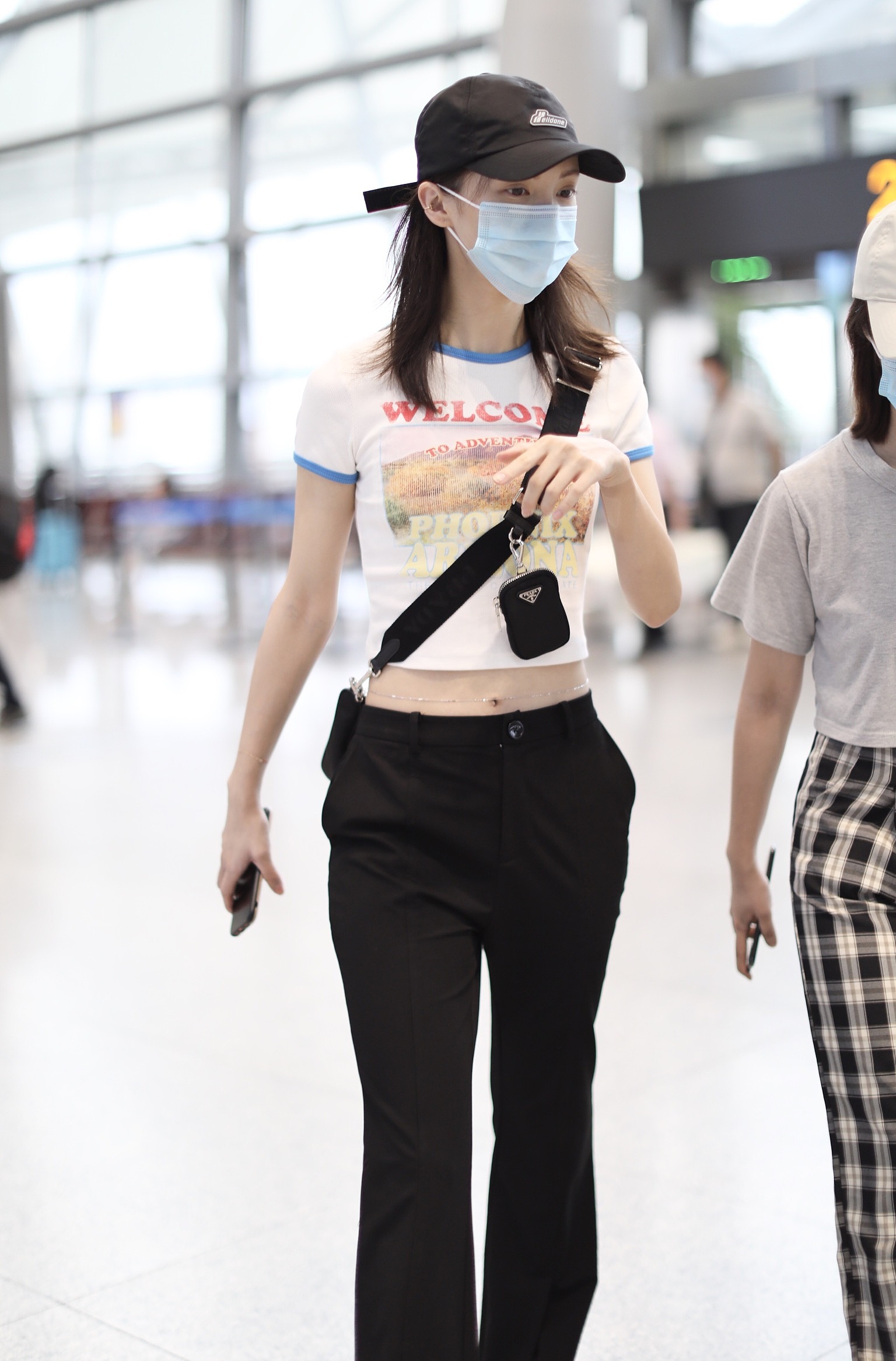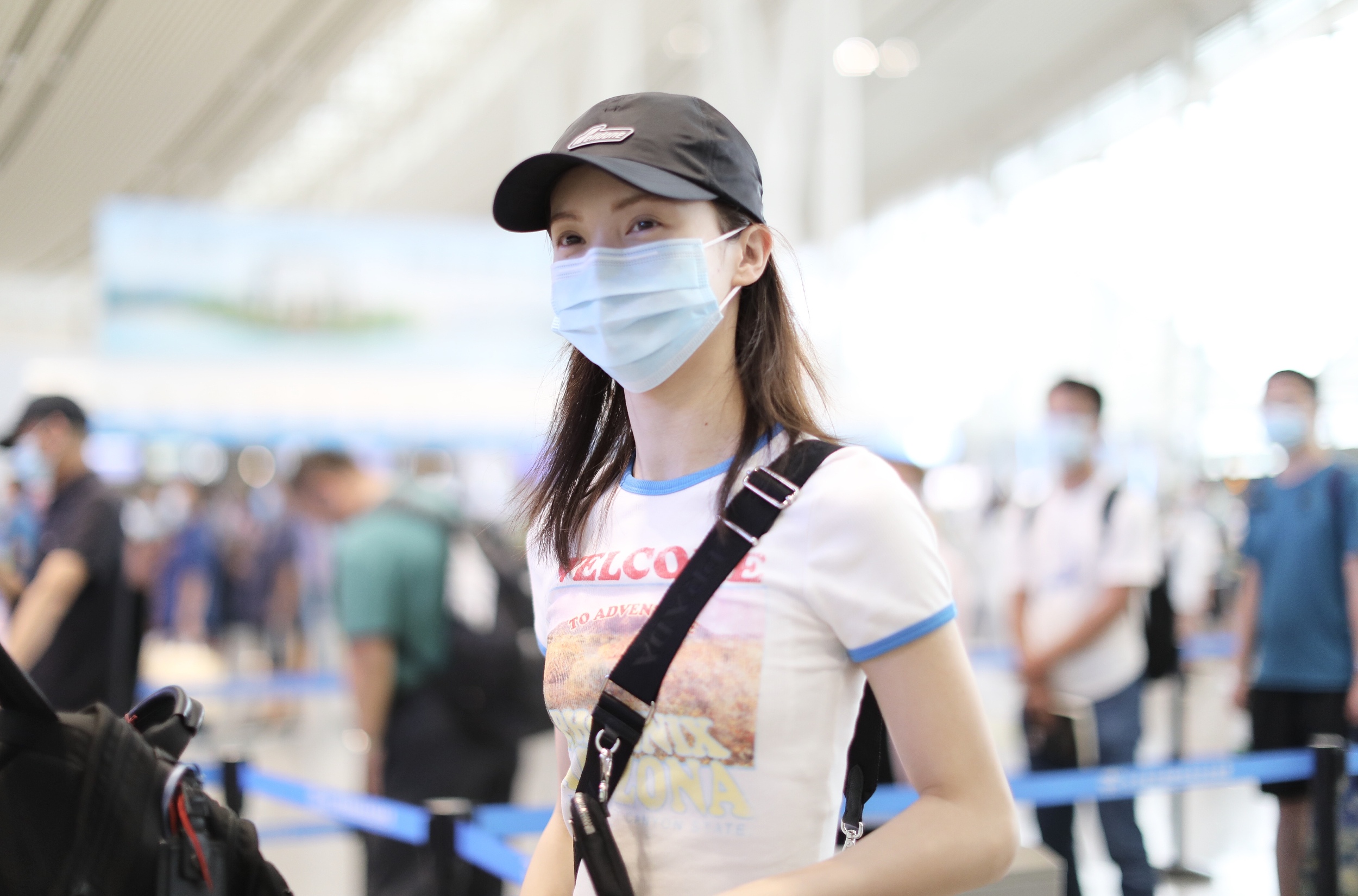 2020年6月9日,湖南长沙,金晨现身机场。大清早出现的她状态不错,戴着棒球帽身着超短白T,大秀水蛇腰及腰链,一路心情超好,更不时笑成月牙眼!