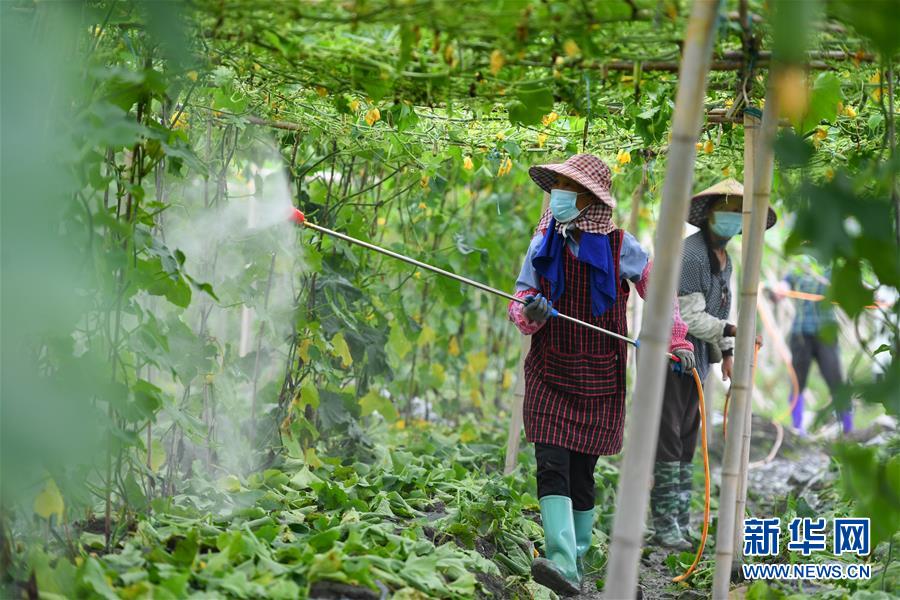 6月9日,在江华瑶族自治县涛圩镇凤尾村蔬菜基地,农户对农作物进行喷洒消毒。近日,受连续强降雨影响,湖南省永州市江华瑶族自治县遭遇洪涝灾害,部分农田受灾。目前,江华瑶族自治县洪水已退,群众在当地相关部门引导下积极开展生产自救。新华社记者陈泽国摄