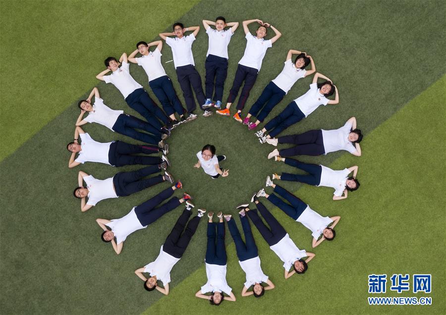 6月9日,河北省衡水市第二中学的高三学生在操场上参加减压趣味游戏(无人机照片)。2020年高考临近,河北省衡水市第二中学组织开展多种形式的集体“减压”活动,帮助高三学生在紧张备考之余释放身心压力,以轻松、乐观、自信的心态迎接高考。新华社记者朱旭东摄