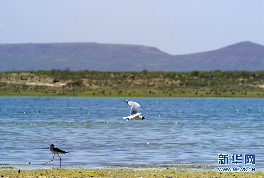 这是6月9日在泊江海子拍摄的黑翅长脚鹬(左)和遗鸥。近年来,在当地政府的多种措施治理下,曾经水面萎缩的内蒙古自治区鄂尔多斯市境内的泊江海子水量逐渐恢复。近期,包括遗鸥在内的40多种鸟类来此栖息,泊江海子重新成为鸟类的乐园。新华社记者贾立君摄