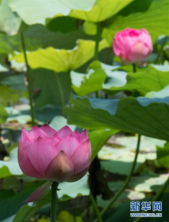 西湖曲院风荷盛开的荷花(6月12日摄)。随着气温升高,杭州西湖荷花次第开放,引得游人驻足。新华社记者翁忻旸 摄