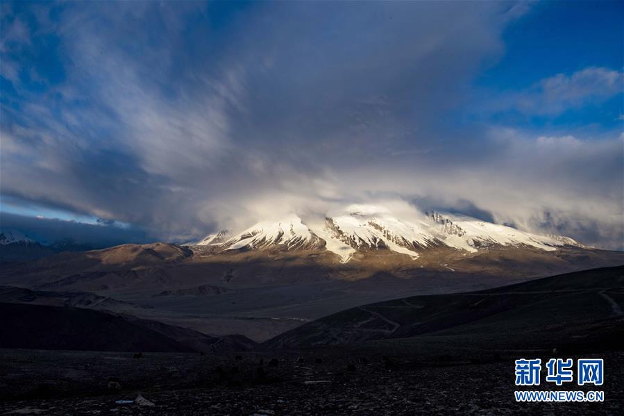 帕米尔高原上,夕阳下的慕士塔格峰(6月15日摄)。新华社记者 胡虎虎 摄