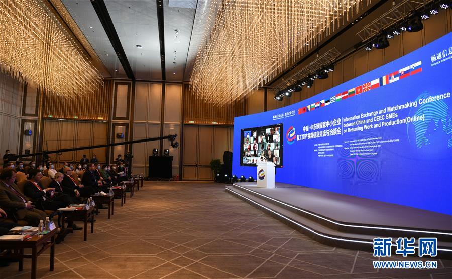 6月16日,中国-中东欧国家中小企业复工复产视频信息交流与洽谈会在北京举行,河北省沧州市设分会场。本次会议以“畅通信息交流,激活企业合作”为主题,157家来自中国与135家来自17个中东欧国家的中小企业和机构围绕“产业、工业制造”“贸易投资、农业”“旅游、人文交流”“医疗卫生”四大版块进行洽谈对接。新华社记者 金良快 摄