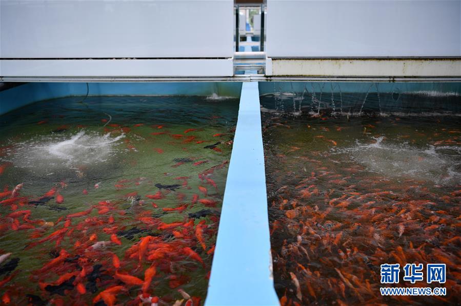 在天津现代晨辉科技集团有限公司的养殖示范场内拍摄的鱼池一角(6月15日摄)。新华社记者 李然 摄