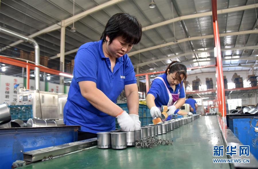 6月15日,河北省邢台市威县一家汽车配件生产企业工人在生产线上工作。新华社记者 朱旭东 摄