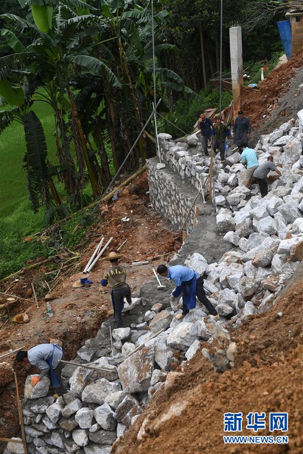 6月17日,工人在百坭村建设挡土墙。新华社记者 陆波岸 摄