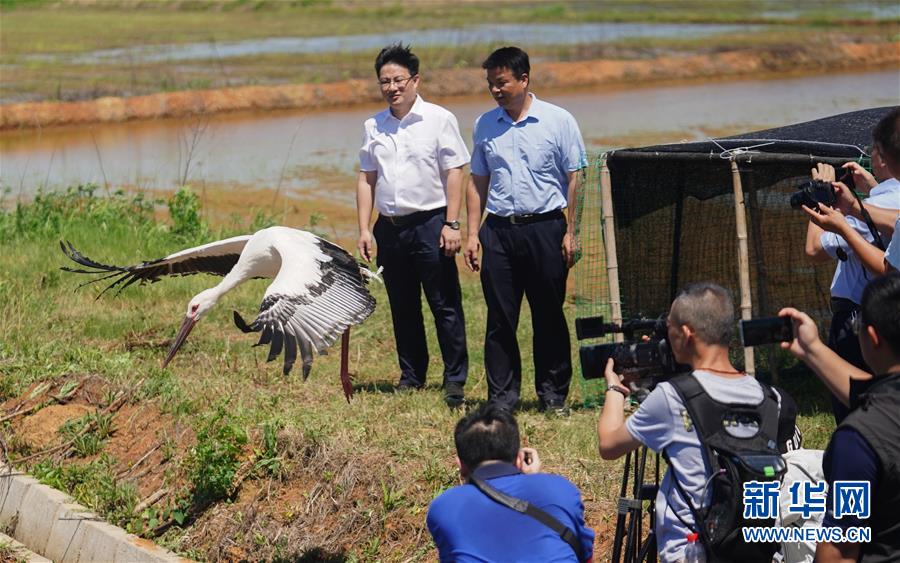6月17日,东方白鹳从笼中飞出。