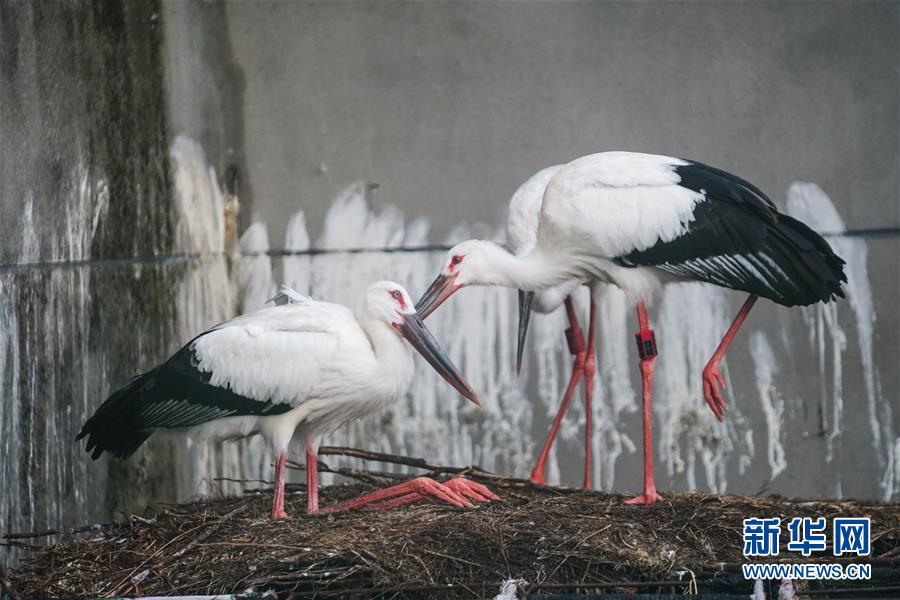6月17日,东方白鹳在笼中等待放飞。新华社记者 周密 摄
