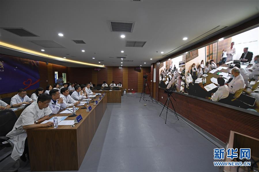 6月17日,宁夏医科大学总医院专家与罗马第一公共医疗卫生中心医务人员进行视频交流。新华社记者 王鹏 摄