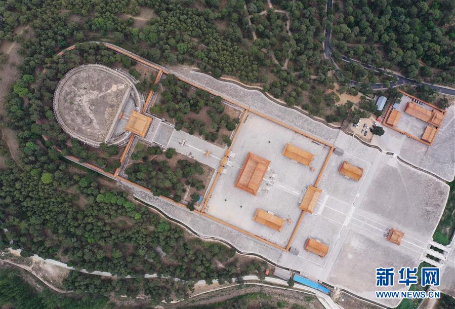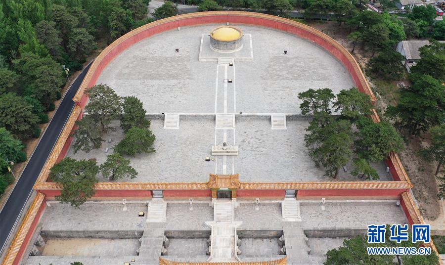 这是清西陵昌西陵宝顶和回音壁(6月18日摄,无人机照片)。新华社记者朱旭东摄