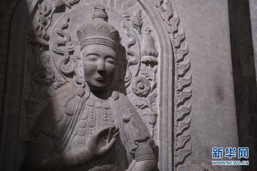 这是清西陵崇陵地宫石门上的雕塑(6月18日摄)。新华社记者朱旭东摄