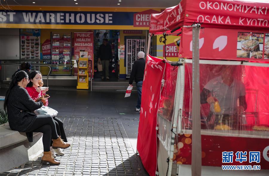 6月19日,人们在澳大利亚悉尼查茨伍德镇的食品摊位旁用餐。新华社记者白雪飞摄