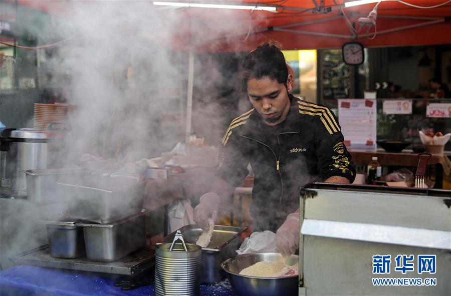 6月19日,一名美食摊主在澳大利亚悉尼查茨伍德镇忙碌。华社记者白雪飞摄