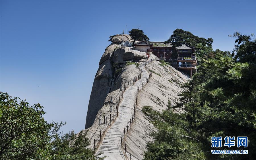 6月18日,静谧的华山西峰。当日,西岳华山经历连续三天暴雨后,迎来灿烂的阳光。新华社记者 陶明 摄