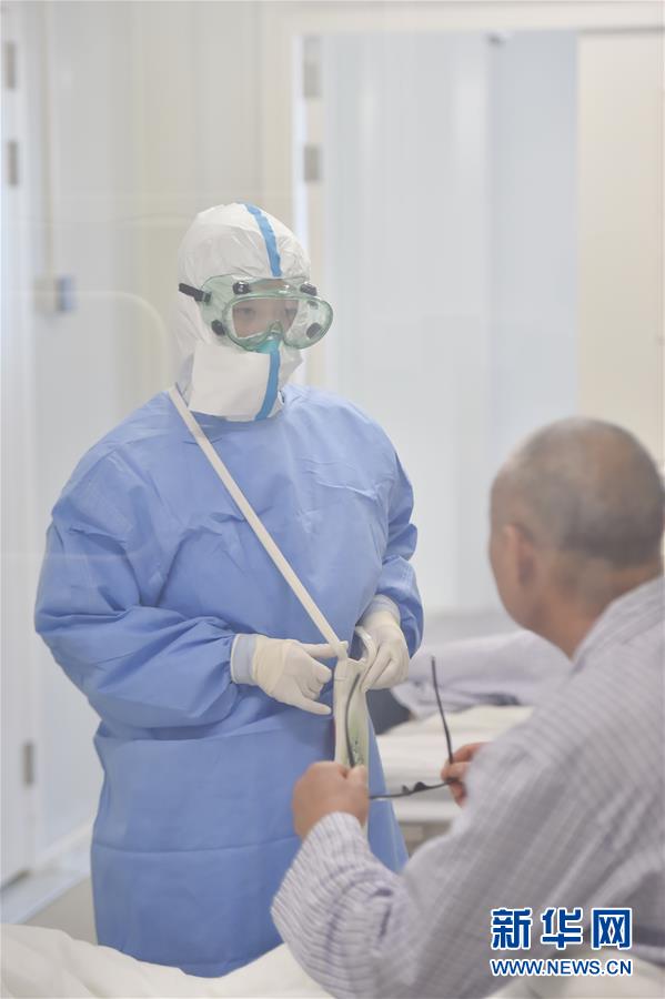 6月19日,在北京地坛医院隔离病房内,护士给新入住的病人做检查。新华社记者彭子洋摄