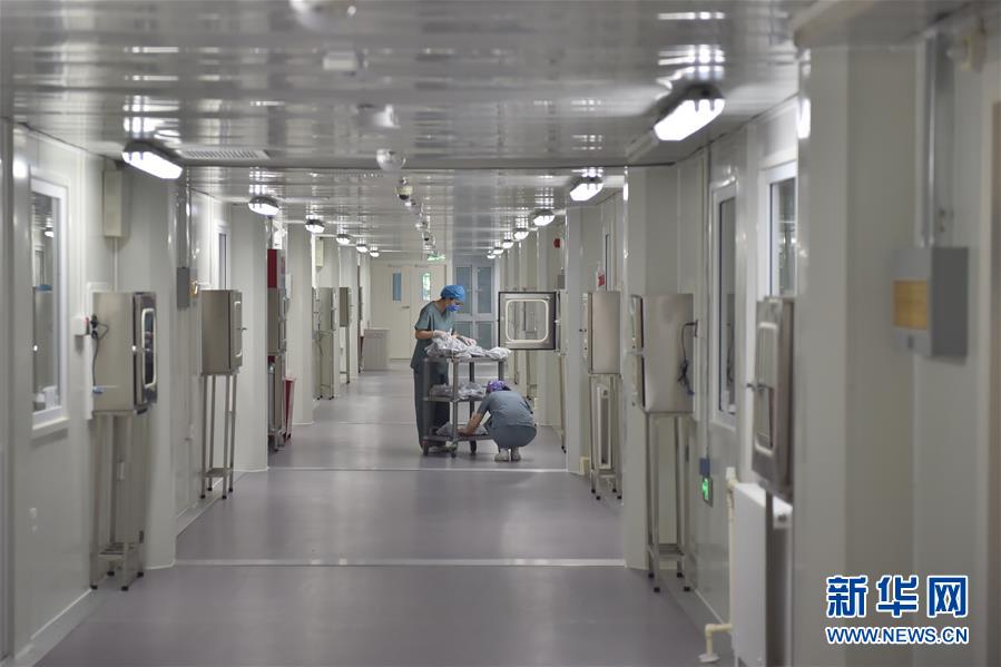 6月19日,在北京地坛医院隔离病房外,工作人员在做走廊的清洁。新华社记者彭子洋摄