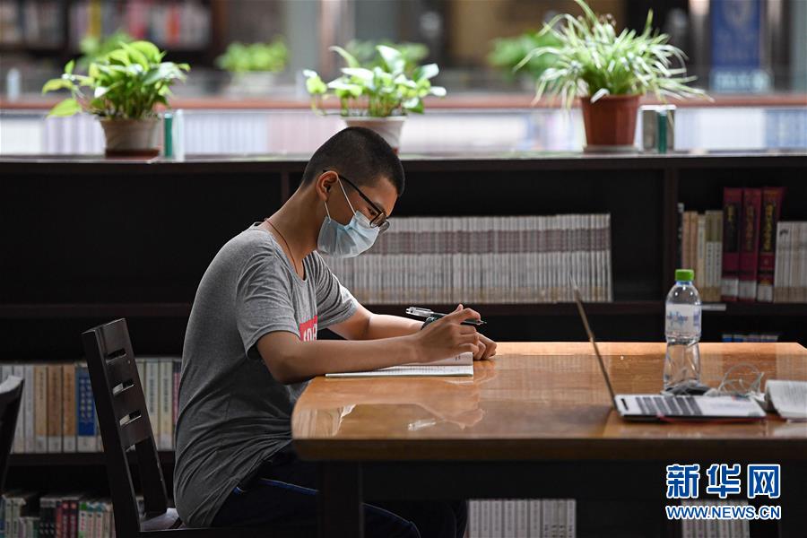 6月21日,市民在海南省图书馆学习。近日,海口持续高温,不少市民在做好疫情防控的前提下来到海南省图书馆,在凉爽、清静的环境里阅读学习,充实自我。新华社记者蒲晓旭摄