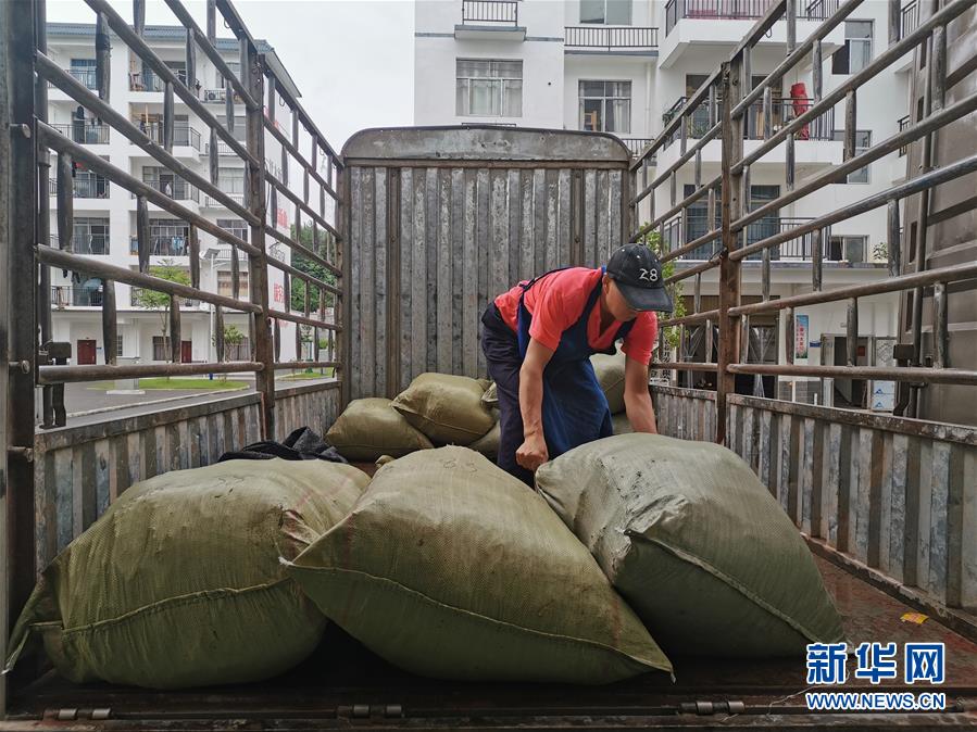 6月18日,在湖南省张家界市桑植县,康华粽叶扶贫工厂的工人在搬运粽叶。新华社记者阮周围摄