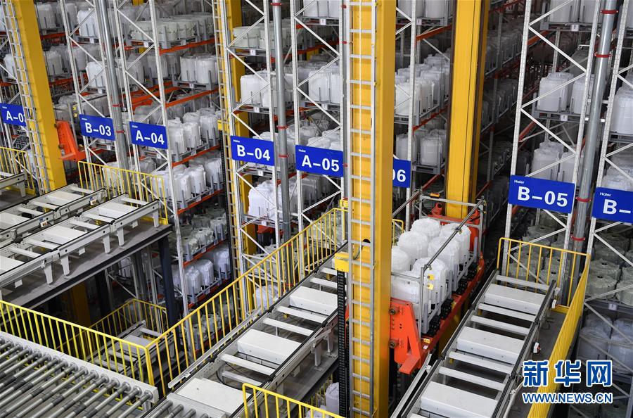 这是天津海尔洗衣机互联工厂内的智能立体库仓储一景(6月22日摄)。天津海尔洗衣机互联工厂位于津南区八里台工业园区,是一个大型智能+5G智慧园区。该洗衣机互联工厂2019年9月正式投产,目前拥有4条智能总装线、3个智能模块区及3套智能物流系统;工厂应用了上百项AI+5G等物联网技术,15个5G智能制造应用场景已实现落地;设计并投产配有3000余个传感器的工业互联网柔性生产线,能同时生产波轮和滚筒洗衣机,并可根据用户需要进行定制生产。据了解,作为天津市首批复工复产的规上企业,天津海尔洗衣机互联工厂稳步提升生产进度,加大洗衣机生产量。新华社记者李然摄