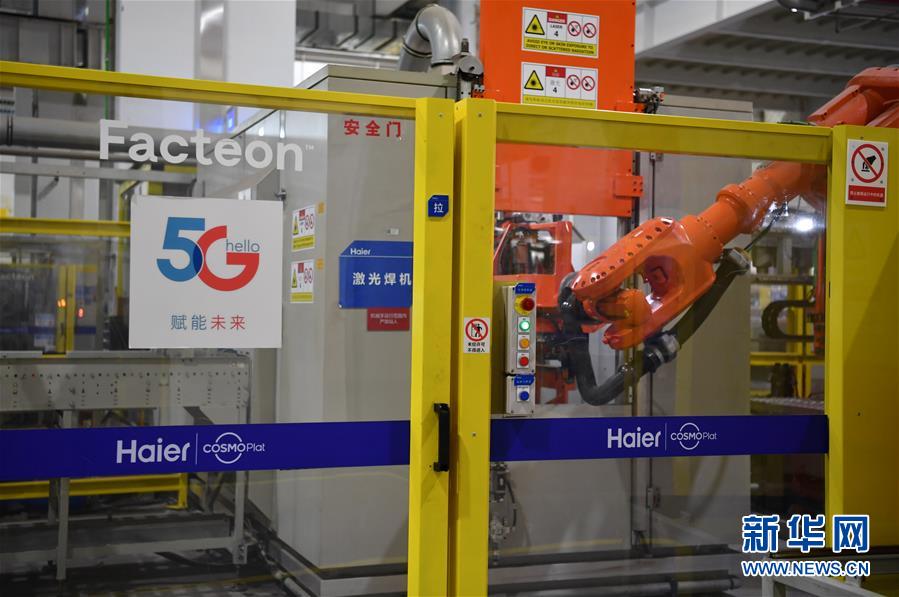6月22日,在天津海尔洗衣机互联工厂内,工作人员利用5G技术进行检验工作。天津海尔洗衣机互联工厂位于津南区八里台工业园区,是一个大型智能+5G智慧园区。该洗衣机互联工厂2019年9月正式投产,目前拥有4条智能总装线、3个智能模块区及3套智能物流系统;工厂应用了上百项AI+5G等物联网技术,15个5G智能制造应用场景已实现落地;设计并投产配有3000余个传感器的工业互联网柔性生产线,能同时生产波轮和滚筒洗衣机,并可根据用户需要进行定制生产。据了解,作为天津市首批复工复产的规上企业,天津海尔洗衣机互联工厂稳步提升生产进度,加大洗衣机生产量。新华社记者李然摄