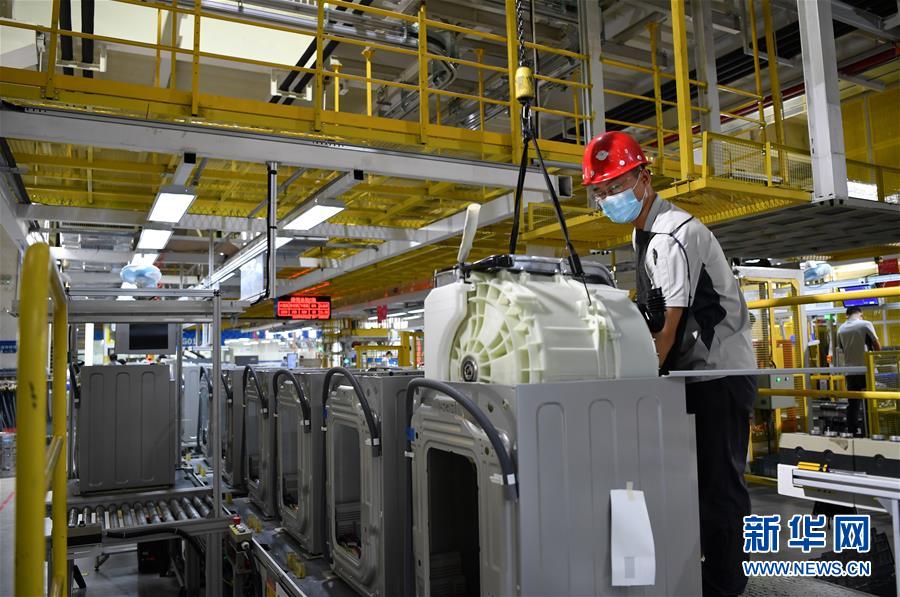 6月22日,在天津海尔洗衣机互联工厂内,工作人员在进行组装工作。天津海尔洗衣机互联工厂位于津南区八里台工业园区,是一个大型智能+5G智慧园区。该洗衣机互联工厂2019年9月正式投产,目前拥有4条智能总装线、3个智能模块区及3套智能物流系统;工厂应用了上百项AI+5G等物联网技术,15个5G智能制造应用场景已实现落地;设计并投产配有3000余个传感器的工业互联网柔性生产线,能同时生产波轮和滚筒洗衣机,并可根据用户需要进行定制生产。据了解,作为天津市首批复工复产的规上企业,天津海尔洗衣机互联工厂稳步提升生产进度,加大洗衣机生产量。新华社记者李然摄