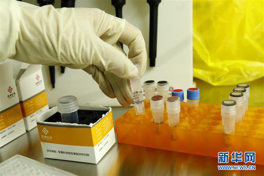 6月23日,检验人员在实验室内制备检验试剂。6月15日,北京市普仁医院PCR实验室正式启用,并立即投入到新冠肺炎病毒核酸检测工作之中,为新冠肺炎疫情防控增添利器。普仁医院PCR实验室启用以来,除了来自本院发热门诊、门急诊、病房和核酸检测采样点的样本之外,还承接了社区以及东城区集中核酸检测点采集的部分样本。新华社记者张玉薇摄