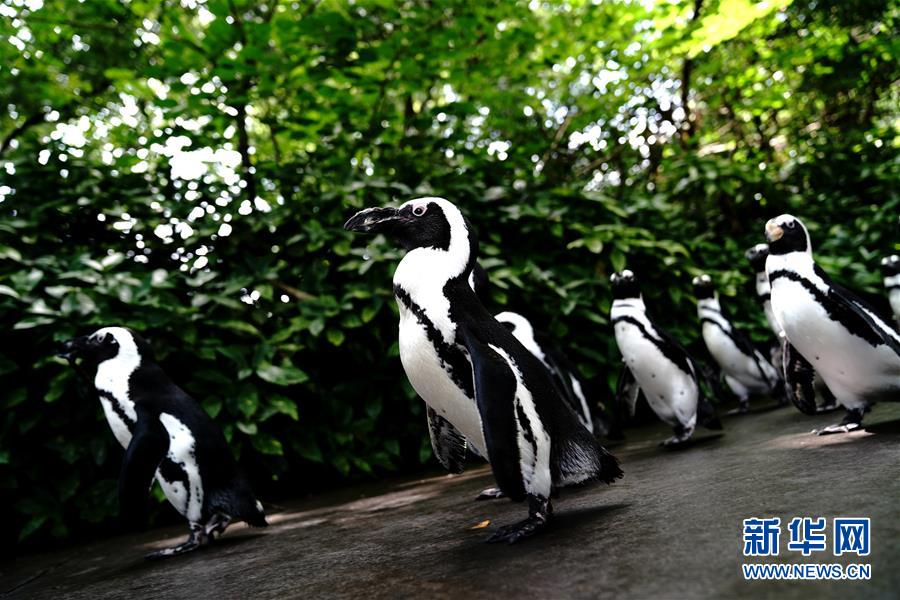 6月26日,上海动物园的企鹅在园内漫步。新华社记者 张建松 摄