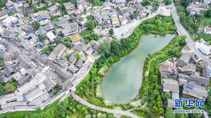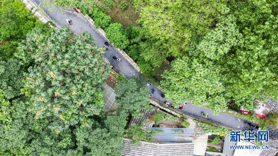 贵阳市青岩古镇景区风光(无人机照片)。仲夏时节,贵州省贵阳市花溪区青岩古镇景区绿意盎然,优美的风景吸引众多游客前来观光游玩。新华社记者陶亮摄
