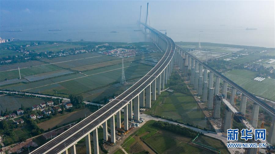 沪苏通长江公铁大桥(6月30日摄,无人机照片)。即将于7月1日通车的沪苏通长江公铁大桥北起江苏南通,南至江苏张家港,公铁合建跨江正桥全长5827米,为集合高速公路、客货混线铁路、高速铁路的“三合一”过江通道,建成通车后将有效促进长三角城市群跨江融合、协同发展。新华社记者李博摄